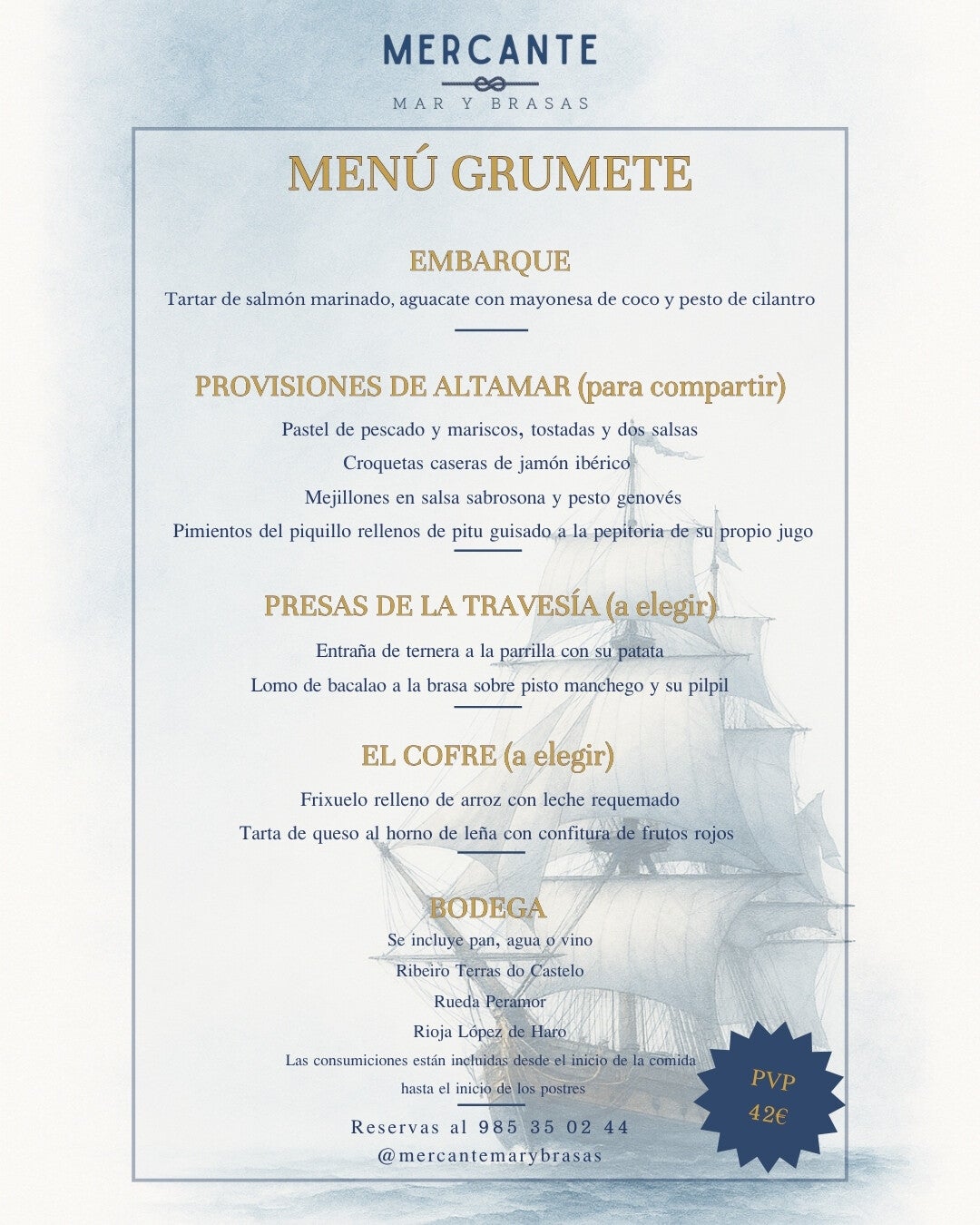En Mercante, reunirse alrededor de la mesa es algo más que comer: es compartir rumbo. Nuestros menús de grupos están pensados para cuadrillas, familias y equipos que quieren disfrutar sin complicarse, con una propuesta generosa, cuidada y pensada para el disfrute común.